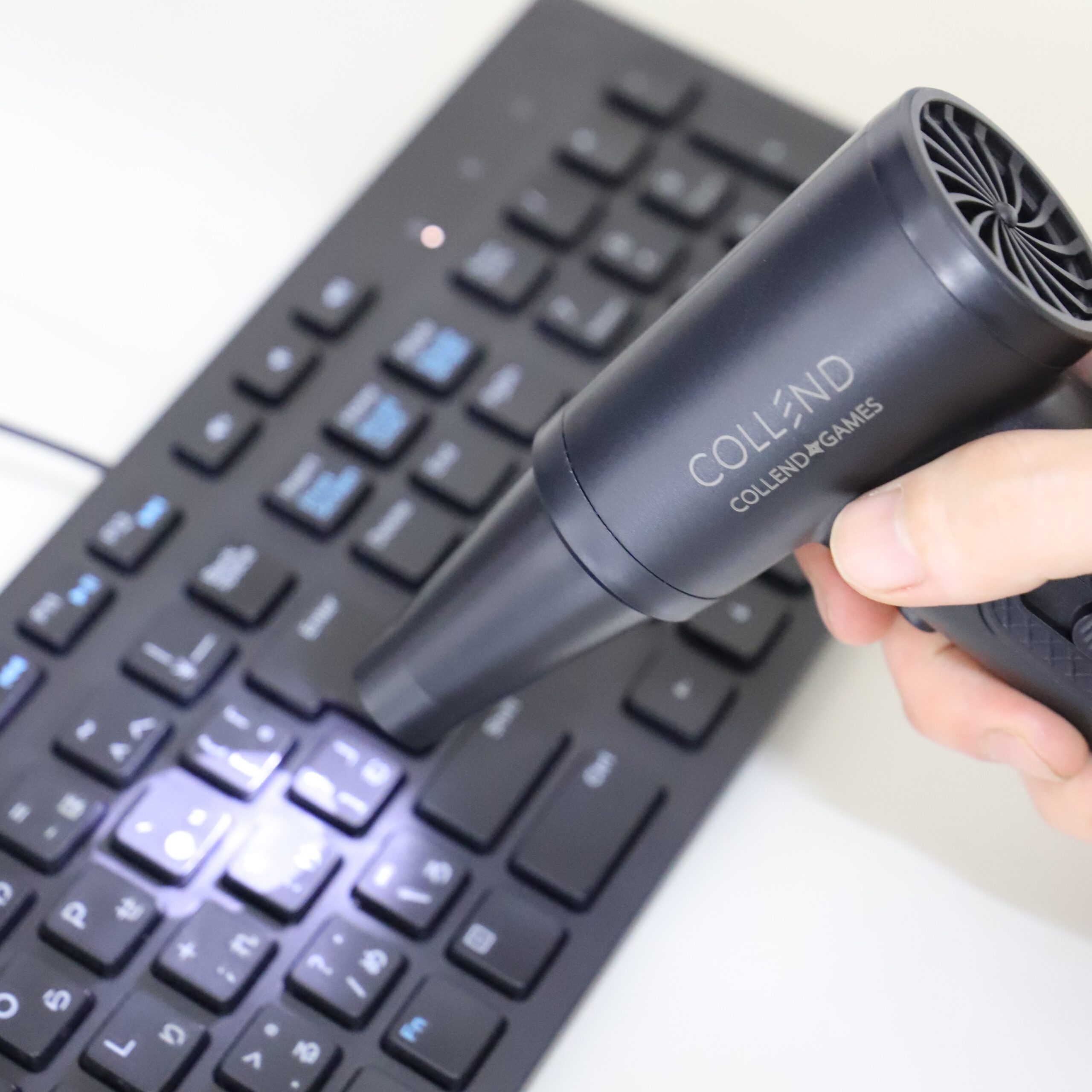 ハイパワーでデスク回りのほこりを除去できる電動のミニエアダスター。