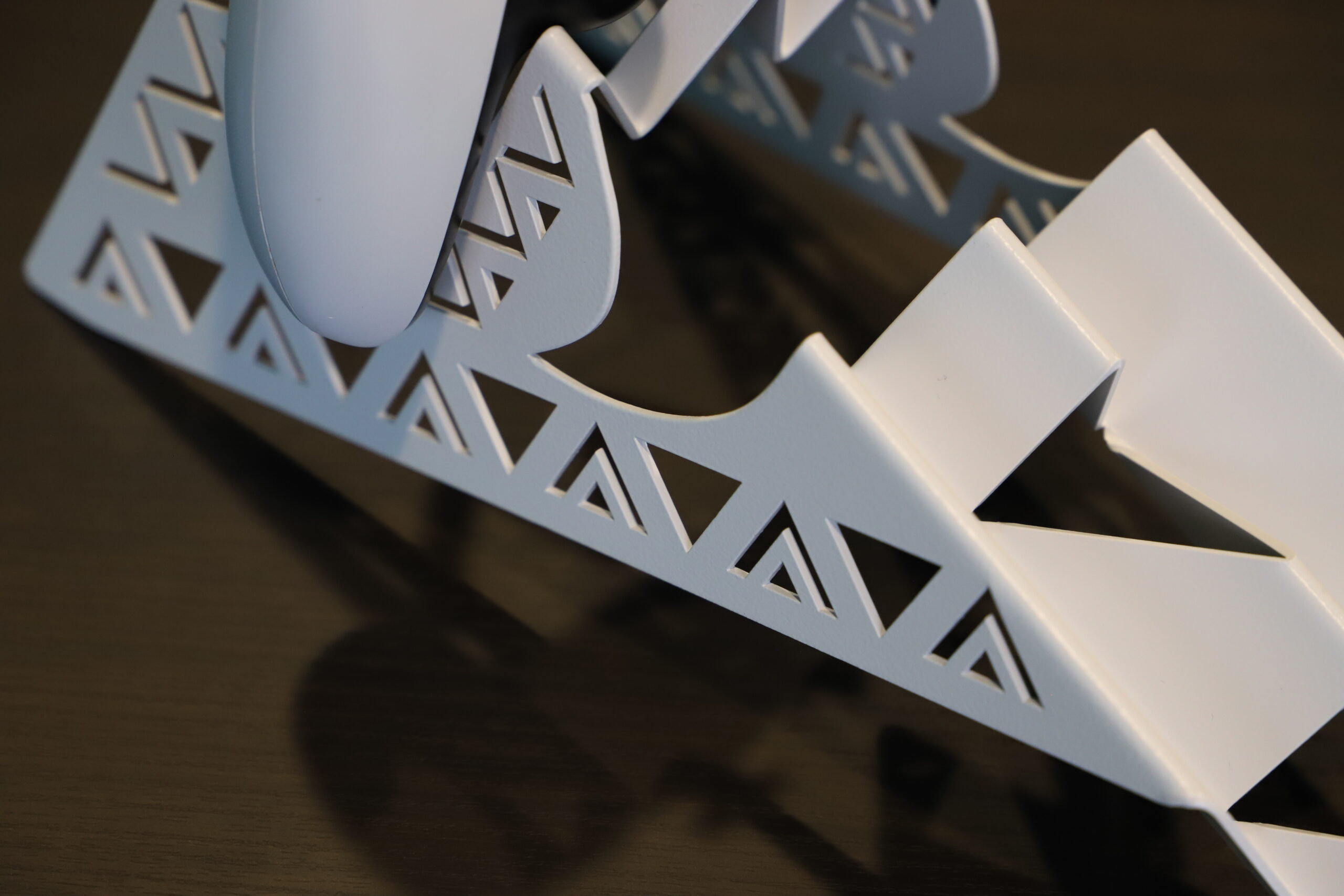 格子状のデザインで、デスクにスタイリッシュな印象を与えます。